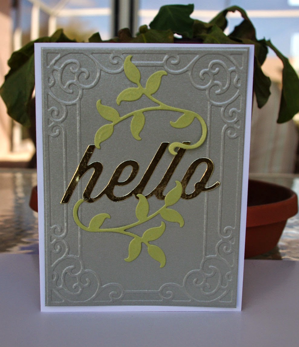 I added a touch of Spring (keeping with the theme) with the pretty embroided flowers. The background is stamped with a sweet tea service stamp set. Used one of my all time favorite quotes as the focal point.